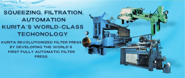 World’s First Fully Automatic Filter Press developed by Kurita. It’s RF type. (obtained patents in Japan, U.S.A, U.K and Germany